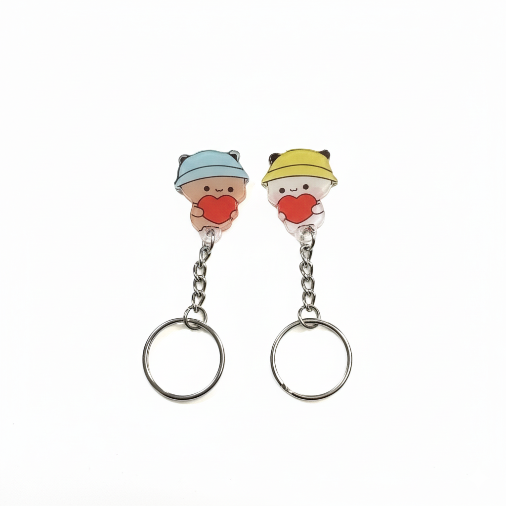 - Breloki z Postaciami Dudu i Bubu: Dwa oddzielne breloki z kółkami, które idealnie łączą się ze sobą serduszkiem, gdy są zawieszone na keyholderze.